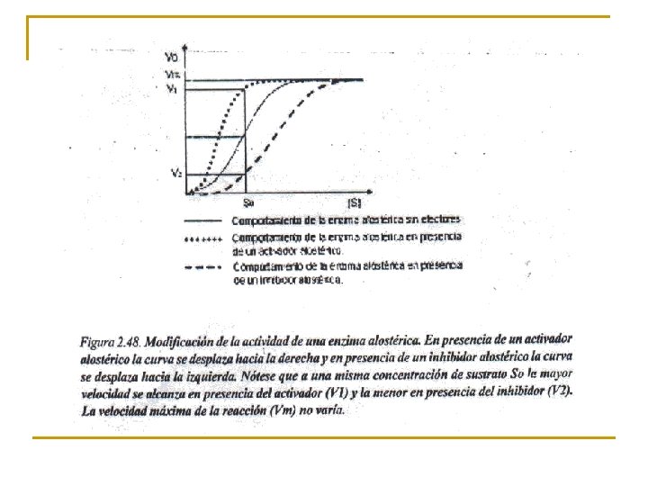 Importancia de la regulación alosterica n n Los activadores e inhibidores alostéricos son sustancias propias de la célula y sus concentraciones varían como consecuencia de la propia actividad celular. En ocasiones el activador y el inhibidor forman una pareja cuyas concentraciones varían de manera contraría, cuando aumenta la de uno de ellos disminuye la del otro. Estas variaciones de concentración constituyen estímulos que adaptan el funcionamiento de las enzimas a las condiciones celulares. Casi siempre catalizan una de las primeras Rx de las vías metabólicas, regulándolas desde el inicio, permitiendo que éstas funcionen sólo cuando hacen falta. Esta ubicación hace posible que la célula utilice la cantidad indispensable de sustancia y energía para su funcionamiento, sin gastos excesivos, lo cual es una regularidad que se expresa bajo la denominación de Principio de la Máxima Economía.