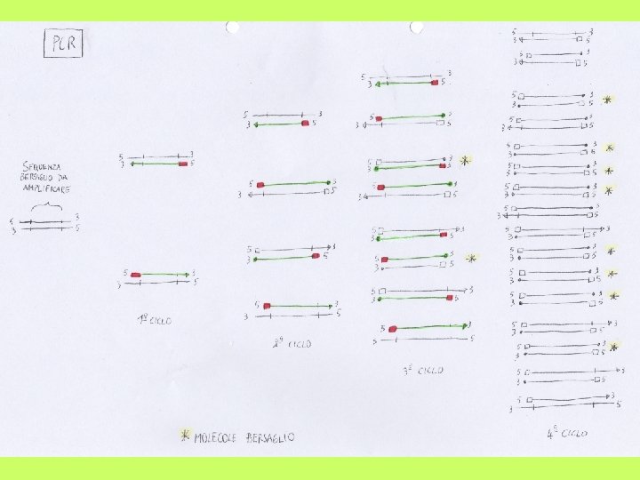 PCR: amplificazione n. ro cicli n. ro sequenze bersaglio 1 0 3 2 10 256 15 8192 20 262. 144 25 8. 388. 608 30 268. 435. 456 La sequenza bersaglio è la sequenza di DNA sintetizzata tra i due primers