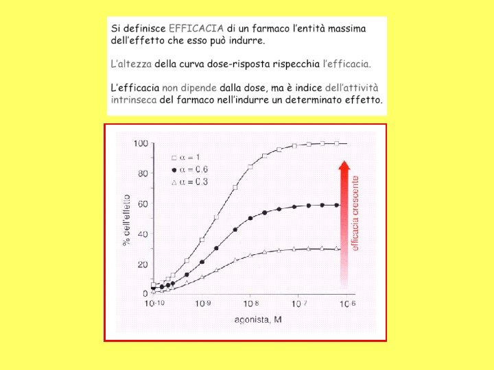 EFFICACIA E POTENZA DI UN FARMACO 100 Farmaco A efficacia massima Farmaco B efficacia minore Potenza minore Risposta Farmaco C 50 ED 50 0 0. 1 0. 3 1 3 Dose (scala log) 10 30
