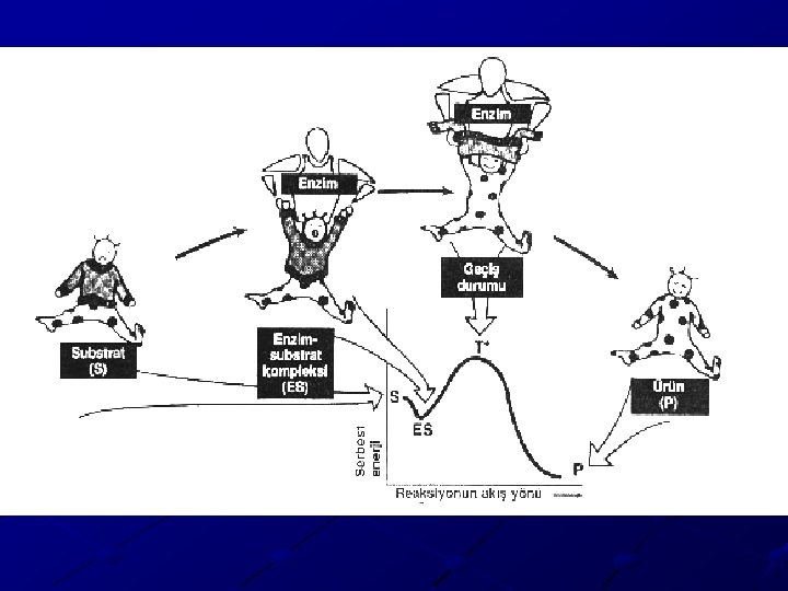 Enzim nedir? Bir kimyasal reaksiyonun hızını artıran ve katalizledikleri reaksiyon sırasında tüketilmeyen protein katalizörleridir. Enzimler kimyasal tepkimelerin hızını hücrenin gereksinimlerine göre ayarlarlar. Bu nedenle enzimler belirli hücresel kompartmanlarda yerleşir ve yüksek ölçüde spesifite gösterirler. Bir çok enzim spesifik organellerde lokalizedir. Enzimler protein yapılıdır. Primer-sekonder-tersiyer ve nadiren quarterner yapı gösterirler. Bazı RNA tipleri özellikle fosfodiester bağının yıkımı ve sentezi sırasında enzimler gibi davranabilirler. Böyle katalitik aktiviteye sahip RNA’lara Ribozim denir.