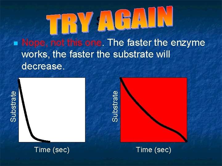 So… Substrate Nope, not this one. The faster the enzyme works, the faster the substrate will decrease. Substrate n Time (sec)
