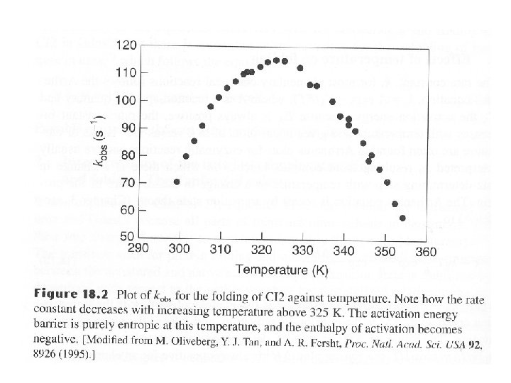 Entropy and enthaply of water must be added • The contribution of water has two important consequences – Entropy of release of water upon folding – The specific heat of unfolding (ΔCp) • “icebergs” of solvent around exposed hydrophobics • Weakly structured regions in the denatured state