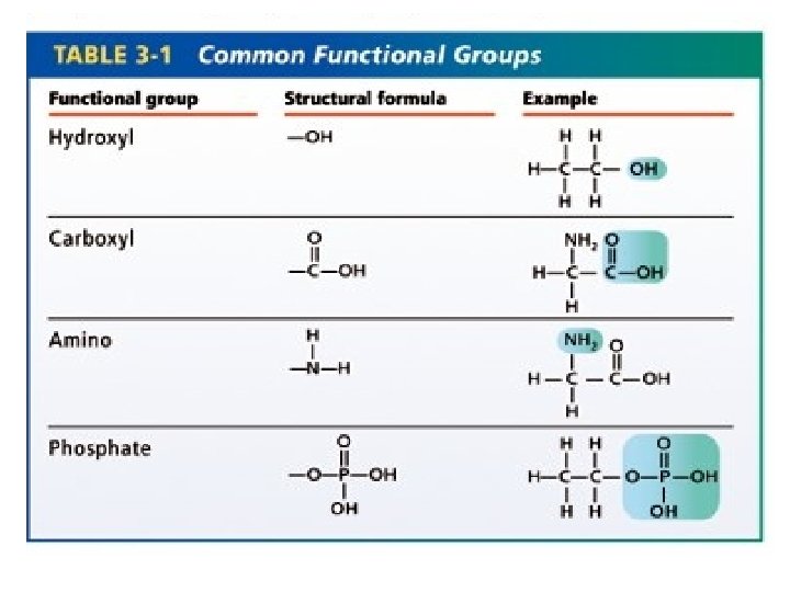Name the 4 functional groups we learned about. What effect do functional groups have on a molecule?