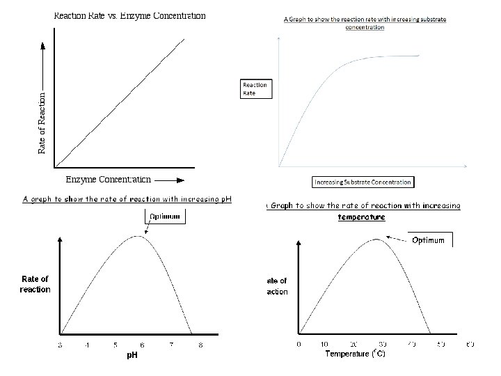 Review questions Label the following graphs with • Substrate concentration • Increasing temperature • Increasing p. H • Enzyme concentration ANSWER