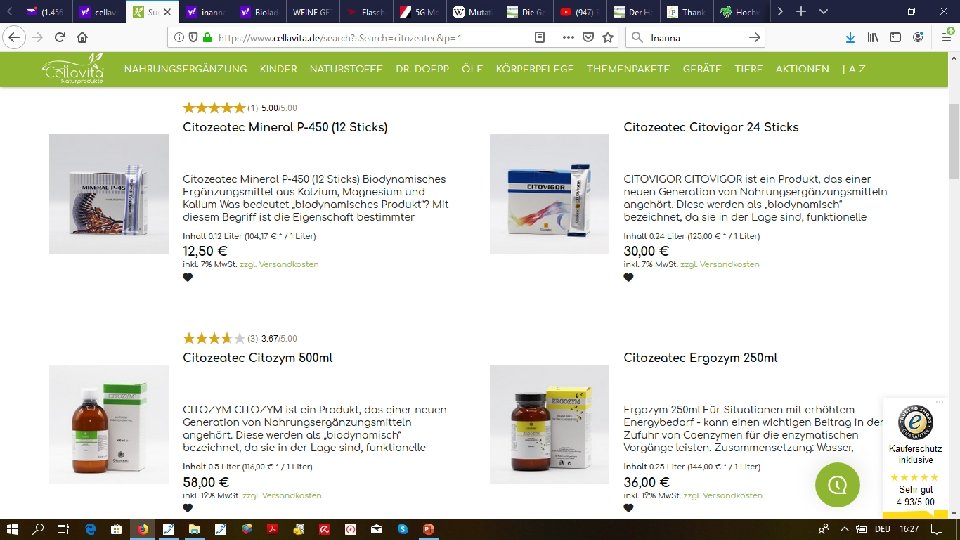 Konkret • Die Firma www. citozeatec. it (Sign. Pasquale Ferorelli) aus Mailand hat es geschafft, Enzymprodukte herzustellen, die auf demselben Weg hergestellt werden wie die Körperzellen es selbst tun. Sie sind durchweg als Sirup vorhanden und können oral und in alle Öffnungen des Körpers gegeben werden. Es gibt keine Unverträglichkeiten. • Diese Enzymtherapie ist wissenschaftlich-biochemisch basiert, dennoch ist sie der Schulmedizin bisher unbekannt. Prinzipiell lassen sich alle Krankheiten damit behandeln, als Addition oder auch als alleinige, da oft wirksamste Behandlungsmethode. Es liegen viele wissenschaftliche Veröffentlichungen über die Erfolge vor (leider nicht auf Deutsch).