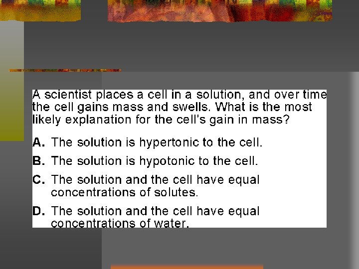 Assignment- Exit Slip Calculate the surface area to volume ratio for a cuboidal cell with 1. 5 cm, 2. 5 cm, 4 cm, and 10 cm. Predict what problems a 10 cm cell would have vs. a 1. 5 cm cell would have.