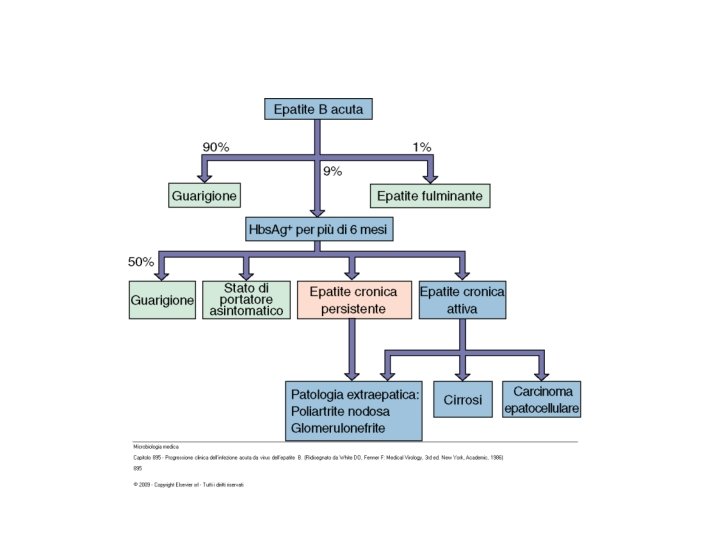 Frequenza di cronicizzazione dopo infezione da HBV: dipende dall’età al momento dell’infezione Infezione acuta Nel bambino > 5 anni e nell’adulto nel neonato 5 -10 % cronicizzazione 80 -95% cronicizzazione