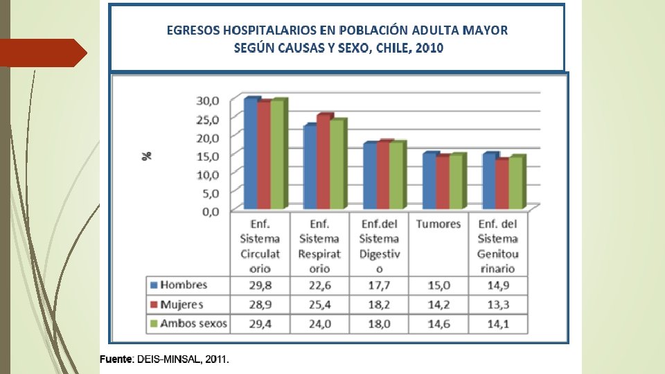 Egresos hospitalarios por enfermedades del sistema circulatorio en personas de 65 años y más (Chile 2010) Fuente: DEIS-MINSAL