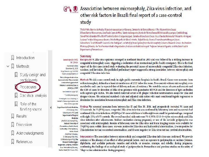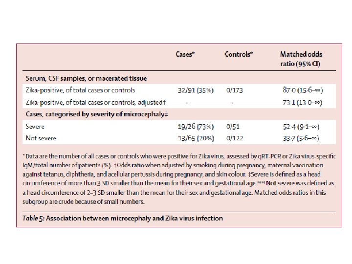 Artigo • de Araújo TVB, Ximenes RAA, Miranda-Filho DB, Souza WV, Montarroyos UR, de Melo APL, et al. Association between microcephaly, Zika virus infection, and other risk factors in Brazil: final report of a case-control study. Lancet Infect Dis. 2018; 18(3): 328 -336.