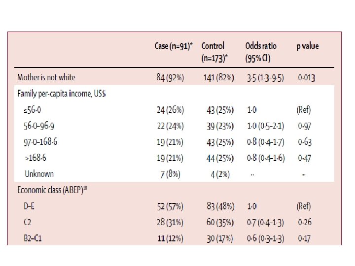 Seleção dos controles • Foram selecionados como controles: • Para cada bebê com microcefalia,