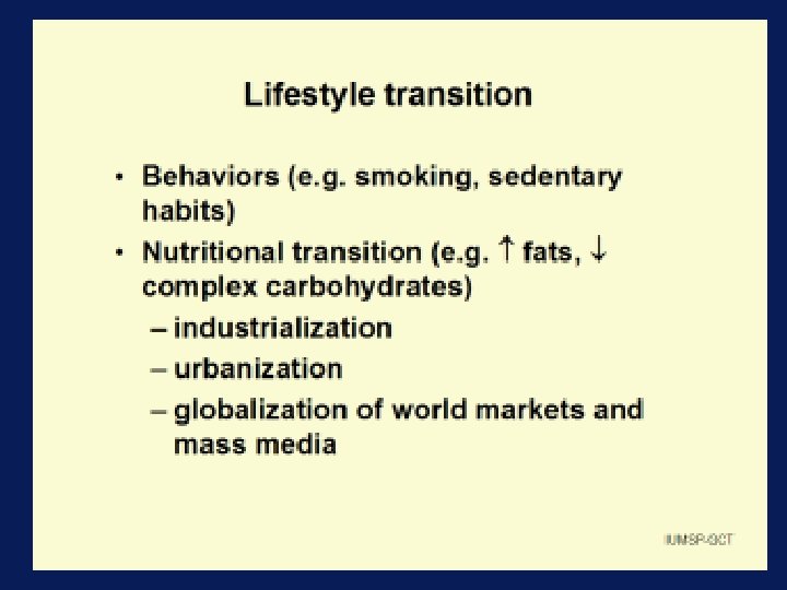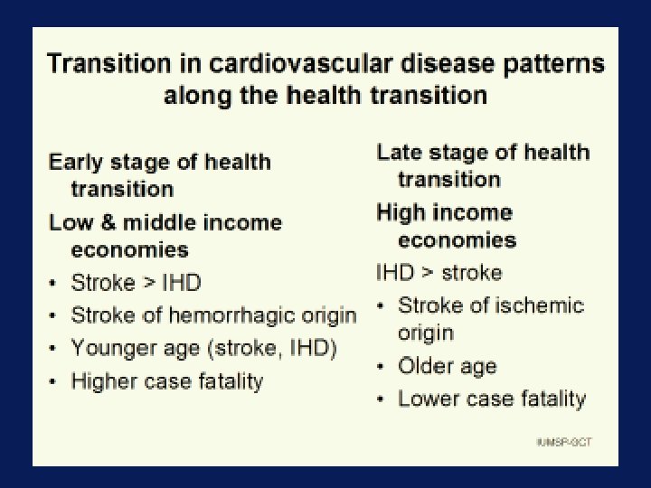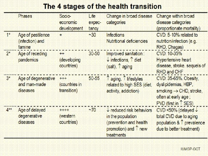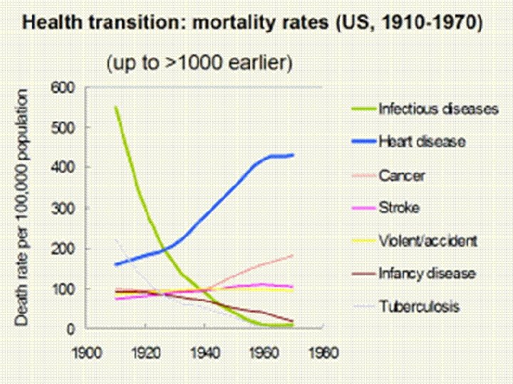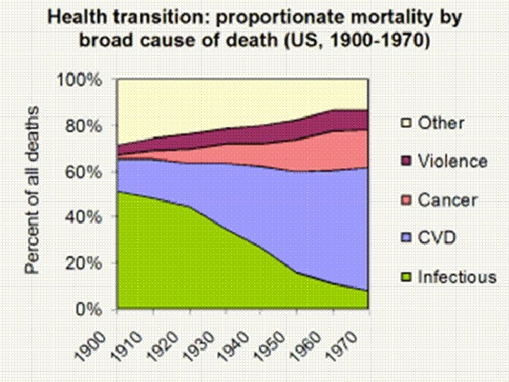 Stages of the Epidemiologic Transition v v v Pestilence and Famine Receding Pandemics Degenerative and man-made diseases