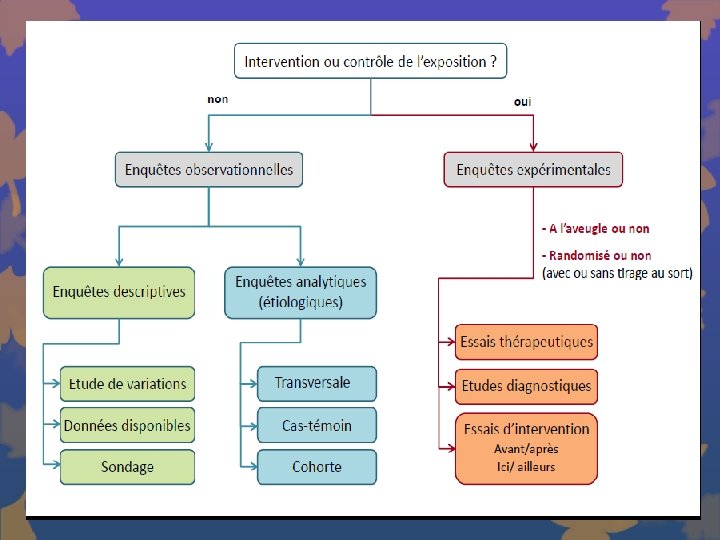1. DEFINITION L’´étude expérimentale est caractérisée par le fait que le chercheur peut manipuler le facteur étudié (traitement ou intervention). Le chercheur peut intervenir sur : Ø le ou les facteurs d’exposition, Ø le moment d’exposition, Ø les personnes exposées.