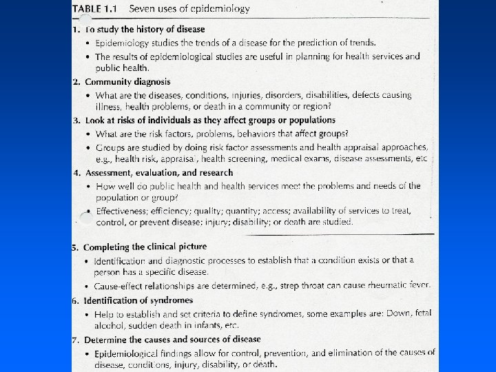 Epidemiologists are required to have some knowledge of: • Public health: because of the emphasis ( )ﺍﻟﺘﺎﺍﻛﻴﺪ on disease prevention • Clinical medicine: because of the emphasis on disease classification and diagnosis (numerators) • Pathophysiology: because of the need to understand basic biological mechanisms in disease (natural history) • Biostatistics: because of the need to quantify disease frequency and its relationships to antecedents (denominators, testing hypotheses) • Social sciences: because of the need to understand the social context in which disease occurs and presents (social determinants of health phenomena)