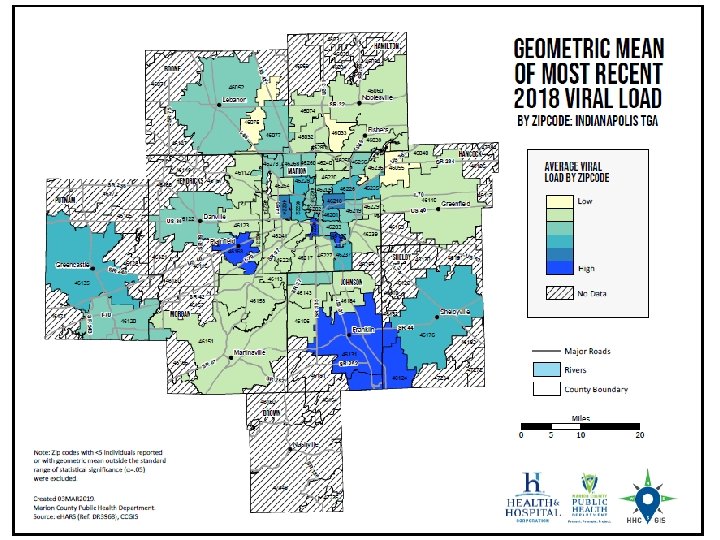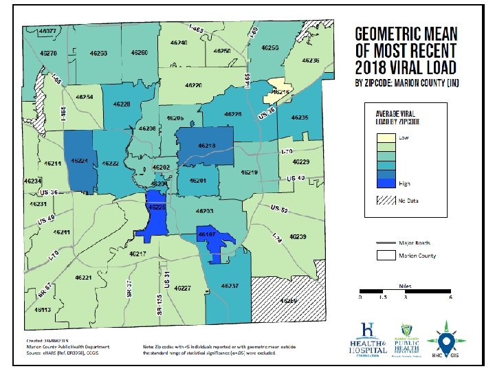 Community Viral Load by County • Number and percent with suppressed viral load (<200 copies/m. L) at last CY 2018 test, by county of residence County of Residence Boone Brown Hamilton Hancock Hendricks Johnson Marion Morgan Putnam Shelby N 34 7 212 46 136 122 3832 38 51 19 % at <200 copies/m. L** 62. 2 77. 8 74. 7 77. 2 64. 6 55. 4 61. 2 66. 7 68. 2 41. 9 Geometric Mean Viral 95% Confidence Load Interval (GM) 25 -117 * 24 16 -35 40 30 -53 34 23 -51 * 44 -100 51 35 -73 62 58 -67 33 20 -53 * 35 -128 * 34 -856 *Point estimate suppressed due to wide confidence interval **Percentage includes unknown/missing viral loads in denominator
