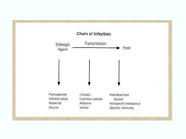 Ecological Factors in Infections Altered environment {Air conditioning} Changes in food production & handling {intensive husbandry with antibiotic protection; deep-freeze; fast food industry} Climate changes {Global warming} Deforestation Ownership of (exotic) pets Air travel & Exotic journeys / Global movements Increased use of immunosuppressives/ antibiotics American Museum of Natural History Exhibition: Epidemic! The World of Infectious Disease (www)