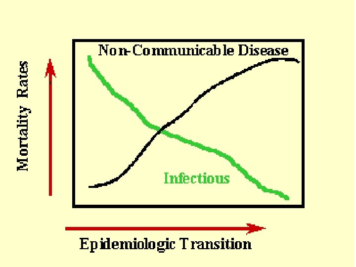 The reasons for this change (Contin. ) l 2. Demographic transition or aging of the population. Demographic transition is characterized by a decline in mortality and a drop in fertility. Fewer children are being borne, but more of those borne are surviving to reach old age. Therefore the proportion of persons aged 65 years or above has risen to over 15% in some developed countries and it will continue to rise reaching 20% or more early in the 21 st century. The overall results of these demographic changes are that the prevalence of diseases that occur mainly in the older age group rises.