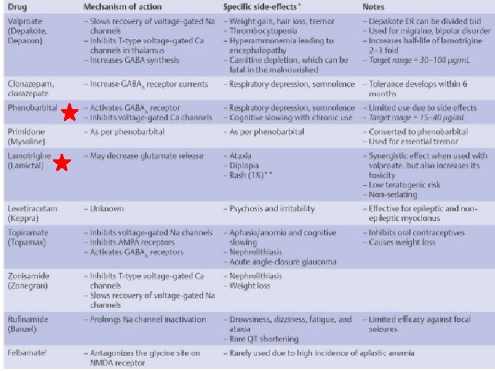 Juvenile Myoclonic epilepsy • interictal EEG demonstrates bursts of bilateral, symmetric 3. 5– 6 -Hz spike-and-wave and polyspike discharges; ictal EEG exhibits diffuse polyspike activity followed by 1– 3 -Hz slow waves • Pathophysiology: genetic, but usually with complex inheritance pattern • Treatment: valproate > lamotrigine, levetiracetam, topiramate, zonisamide