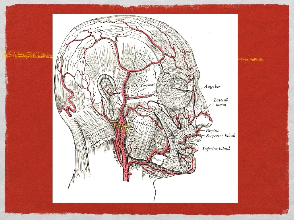 Verevarustus • • Arteriaalse vere toovad peamiselt kaks arterit: 1. A. carotis interna RR. ethmoidales anterior et posterior (a ophtalmica osad) 2. A. carotis externa harud- a. sphenopalatina, a. palatina major, a. labialis superior, a. angularis Pindmine verevarustus toimub peamiselt a. facialise kaudu, mis läheb üle a. angulariseks.