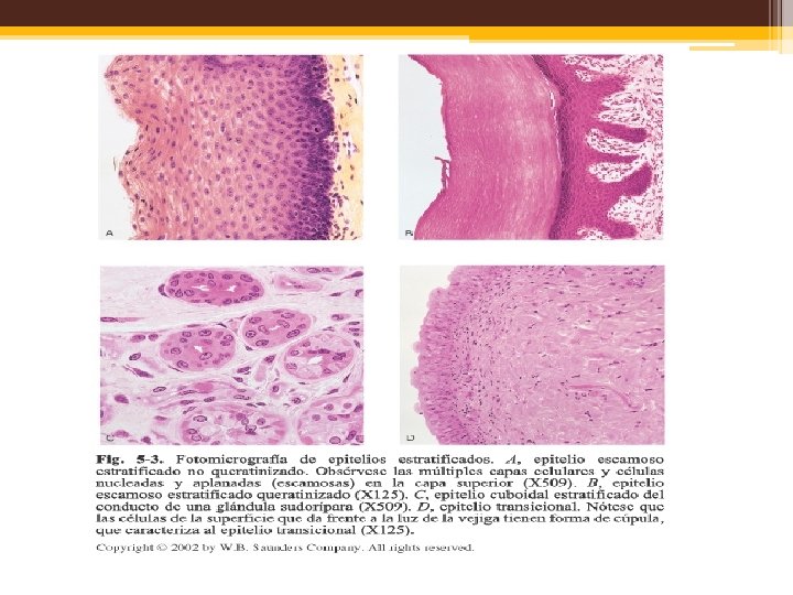 Tejido epitelial: funciones. • Protección. ▫ De los tej. Subyacentes del cuerpo de abraciones y lesiones. • Transporte transcelular. ▫ De molélulas a través de las capas epiteliales. • Secreción. ▫ De moco, hormonas, enzimas, entre otros, de diversas glándulas. • Absorción. ▫ De material de una luz (ej. Tubo digestivo o ciertos túbulos renales).