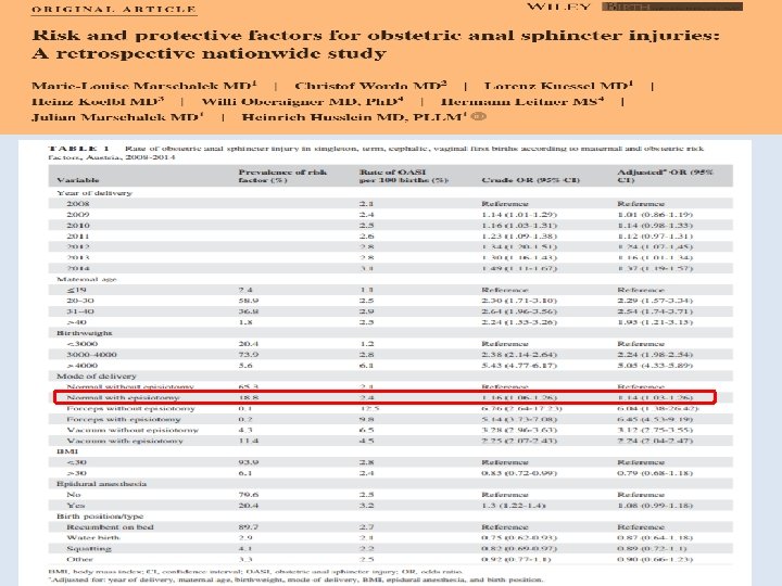 Obstetrik Anal Sfinkter Hasarı için Risk Faktörleri Omuz distosisi Operatif vaginal doğum Median Epizyotomi Daha varlıklı sosyoekon omik statü İleri anne yaşı Makrozomi