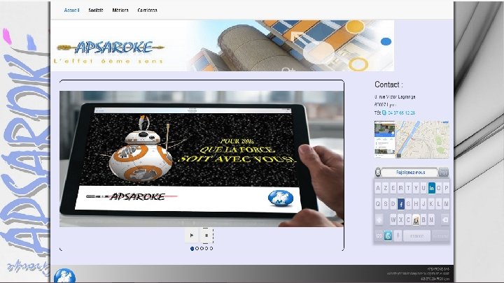 Site web Apsaroke Première mission Reprise du site web de la société APSAROKE Parcours professionnel : Apsaroke