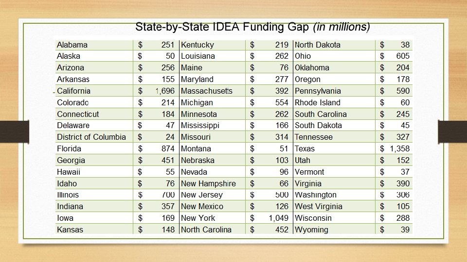 • Wright, Whitney. The Disparities between Urban and Suburban American Education Systems: A Comparative Analysis • Using Social Closure Theory. Http: //www. efc. gwu. edu/. The Educational Facilities Clearinghouse, 29 Mar. 2009. Web. • State-By-State IDEA Funding Gap (In Millions). Digital image. Ideamoneywatch. com. N. p. , n. d. Web. • Bragin, Martha. “So That Our Dreams Will Not Escape us: Learning to Think Together in Time Inquiry 32. 2 (March 2012): 115 -135. Taylors & Francis Group. of War. ” Psychoanalytic Web. 8 April 2016. • Education and Discrimination Against Girls. ” A World at School, n. d. Web. 8 April 2016. • Marsden, George M. “Religious Discrimination in Academia. ” Society 52. 1 (Feb. 2015): 19 -22. Springer. Web. 8 April 2016. • “You Won’t Believe How Many Countries Still Won’t Allow Women the Right to Education. ” Web. 8 April 2016. Elite Daily, n. d.