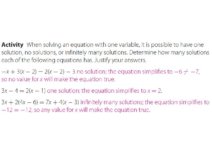The Distributive Property can help you solve equations when an equation contains an expression in parentheses multiplied by a factor, the Distributive Property allows you to distribute the factor and get rid of the parentheses. This allows the equation to be solved.