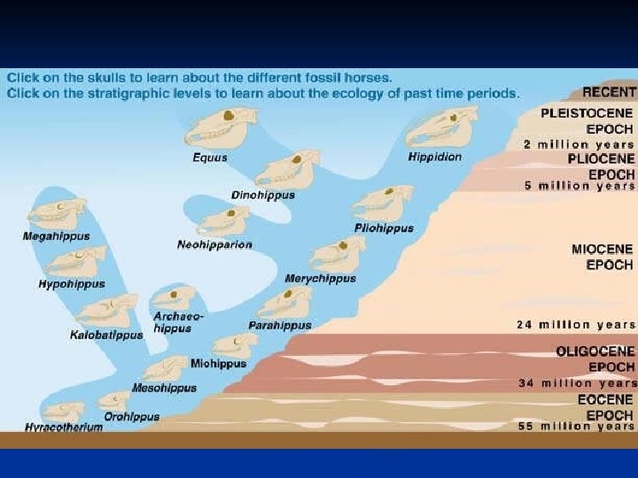 Homework: Check your ideas n n n With your book you and your partner search the internet to see if your ideas were correct Make changes to your story, or add missing details with a different color. Turn this in for a 10 point grade. You could use the following sites: n n n http: //www. critters-2 go. com/prehistoric_horses. htm http: //www. talkorigins. org/faqs/horse_evol. html #part 6 Or find you own