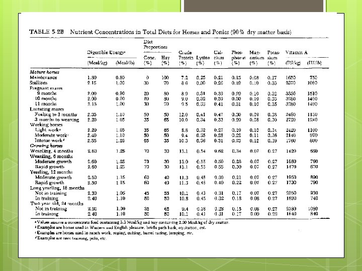 Feeding Management What 2 variables determines How much a horse needs to eat daily? Stage of Life Level of Activity Young vs. Old Idle vs. Working Open vs. Lactating