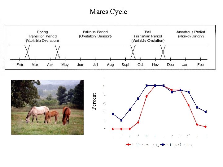Female Reproductive System • Mares are seasonally polyestrous, meaning that during the breeding season they cycle repeatedly. • The natural breeding season centers around the period of long day length-light! • January 1 st is the designated birth date for all horses in the northern hemisphere. This means that a horse born in January and a horse born in June will both be considered 1 yr old the following January. Welcome to the horse world!