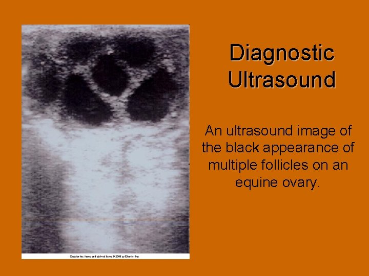 Diagnostic Ultrasound An ultrasound image of the black appearance of multiple follicles on an equine ovary.