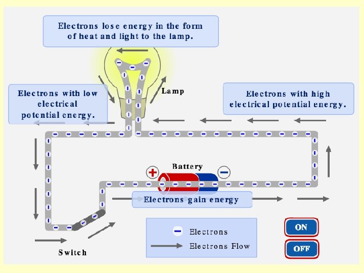 Potential Difference (V) Potential difference is the energy transferred or ’work done’ by each coulomb of charge as it passes through a component. Cells (or batteries) give the electrons energy (provide the push). When the electrons pass through a component they transfer some of the energy. E. g. in a lamp the energy transfer to Heat and light