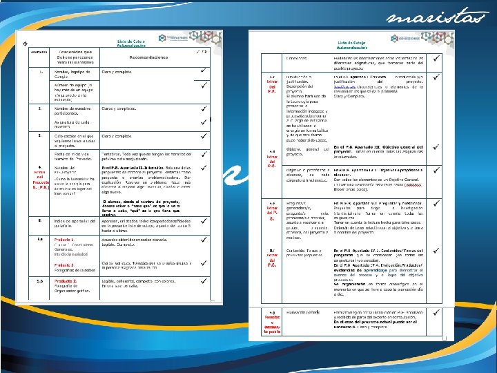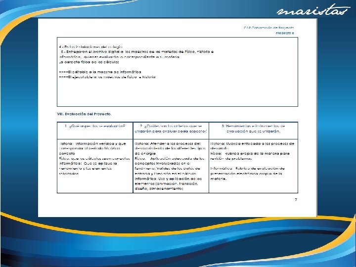 VIII. Evaluación del Proyecto. 1. ¿Qué aspectos se evalúan del proyecto? • Demostrar los conocimientos fácticos, conceptuales o procedimentales pertinentes de las disciplinas • Sintetizar conocimientos disciplinarios para demostrar una comprensión interdisciplinaria • Usar estrategias adecuadas para comunicar eficazmente su comprensión interdisciplinaria • Documentar las fuentes utilizando convenciones reconocidas • Reflexionar sobre el desarrollo de su propia comprensión interdisciplinaria • Evaluar las ventajas y limitaciones de los conocimientos y las formas de conocimiento disciplinarios e interdisciplinarios en situaciones concretas. 2. ¿Cuáles son los criterios que se utilizan para evaluar cada aspecto? Criterio A: Base disciplinaria B. Síntesis C. Comunicación D. Reflexión 3. Herramientas e instrumentos de evaluación que se utilizan. ** Español y literatura: Lubrica ** Informática: Lista de cotejo