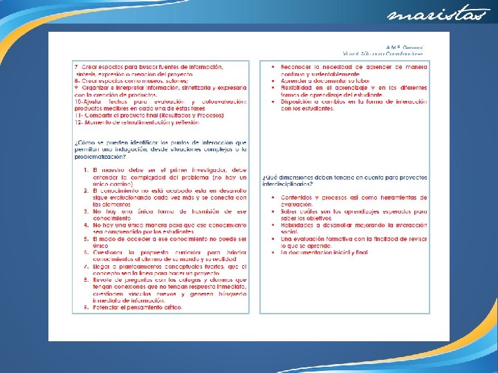 5. Llegar a conclusiones parciales útiles para el proyecto, de tal forma que lo aclaran, describen o descifran (fruto de la reflexión colaborativa de los estudiantes). ¿Cómo se logran? En cada asignatura se realizaron conclusiones que fungieron como los ejes principales para guiar el diseño del modelo. ∗ En plenaria se lanzaron las conclusiones disciplinarias y se acordaron las líneas de trabajo a seguir, con lo que se realizó la subdivisión del trabajo y los alumnos de acuerdo a sus intereses decidieron los roles que asumirían en el proceso: sociólogos, diseñadores gráficos, arquitectos, científicos, políticos y urbanistas. ∗ Cada “Profesión” profundizó en los conceptos que se trabajarían para diseñar el modelo. ∗ En sesiones plenarias se compartió la información para ensamblar el modelo y verificar si los conceptos de esta indagación quedaban lo suficientemente claros ya que la audiencia serían sus compañeros de secundaria y profesores. Cuidaron el lenguaje; se realizaron traducciones ya que la primer parte del modelo se presentaría en inglés (lengua internacional y seleccionada por los alumnos como lengua oficial de su ciudad ideal). ∗ En colaborativo se realizaron retroalimentaciones y se detectaron logros y áreas de oportunidad, sobre las cuales se trabajó. ∗ Se presentó el modelo a una muestra del “target group” para recibir retroalimentación final.