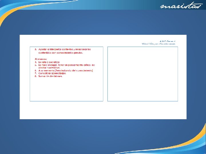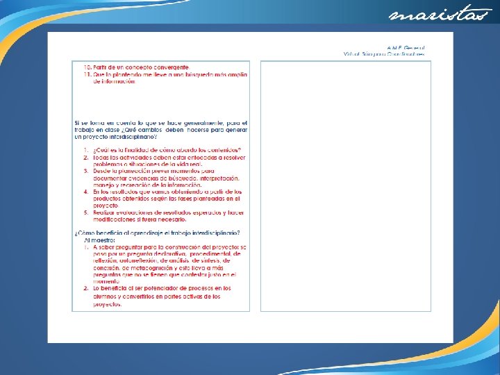 V. Esquema del proceso de construcción del proyecto por disciplinas. Disciplina 1. Disciplina 3. ¿De qué forma la presentación de un modelo de sociedad utópica permite a la comunidad reflexionar a profundidad el impacto que tienen sobre el planeta las decisiones y acciones que como individuos y grupos sociales tomamos? 2. Despertar el interés (detonar). ¿Cómo se involucra a los estudiantes con la problemática planteada, en el salón de clase? Se solicitó a los estudiantes que observaran la película “The Giver” “El dador de recuerdos” , al mismo tiempo se pidió que con base en las propuestas de la película, investigaran en diversas fuentes las predicciones futuristas sobre la conformación de nuevas sociedades. Clips de Películas Libros Revistas Noticias Páginas web Los alumnos compartieron sus descubrimientos con el equipo, contrastaron y compararon la información y discutieron sobre los riesgos y beneficios de las “sociedades utópicas”. La temática les pareció tan interesante que iniciaron lanzando ideas de cómo diseñar desde diversos ámbitos una sociedad “ideal” y se detonó en ellos esta parte crítica que los hizo pensar cuál era la mejor manera de presentar las dos caras del proceso de globalización y cómo éste provoca cambios en los individuos y en las sociedades. 3. Recopilar información a través de la investigación. ¿Qué se investiga y en qué fuentes? https: //www. youtube. com/watch? v=xca_J_tr. LTk https: //www. bimcommunity. com/news/load/182/smartcities-hacia-las-utopicas-ciudad es-del-futuro? platform=hootsuite Libro: “The Giver” por Lois Lowry Película: “El dador de Recuerdos” Disciplina 2. 1. Preguntar y cuestionar. ¿Cuál es o cuáles son las preguntas que dirigen la Investigación Interdisciplinaria? Español 3 Lengua y comunicación, Castillo Rojas, Alma Yolanda, Ed. sm. 3 a. reimp, 2013 www. profesoresenlinea. com. mx http: //www. merca 20. com/quieres-hacer-realidad-aumentada-aquiesta-todo-lo-que-n ecesitas/ http: //www. walden. com/blog/the-giver-7 -creative-classroomactivities/