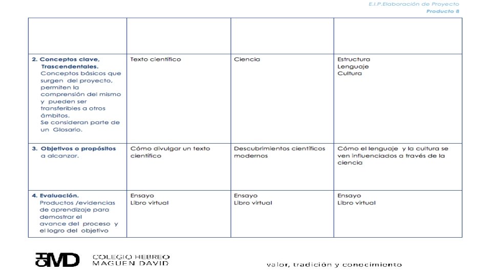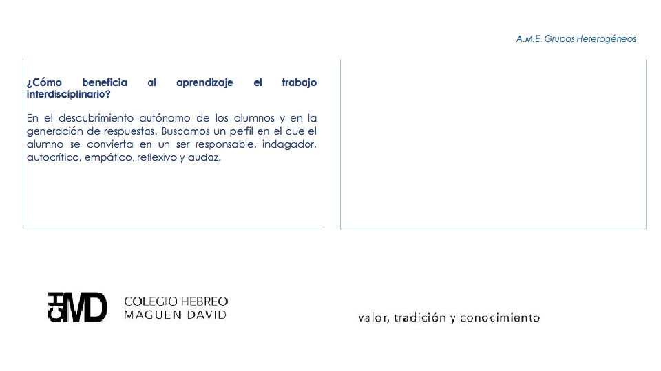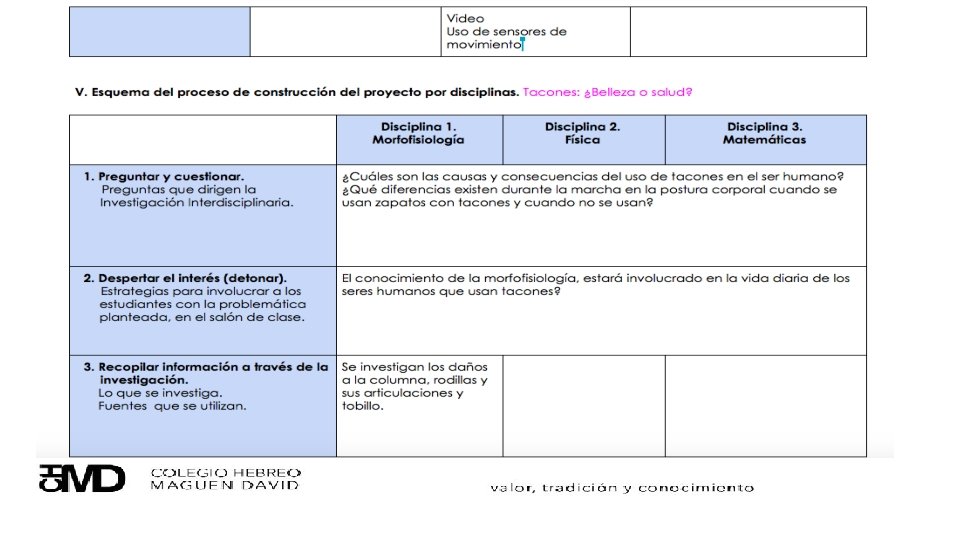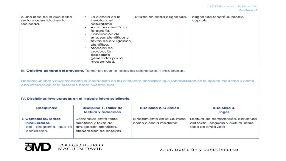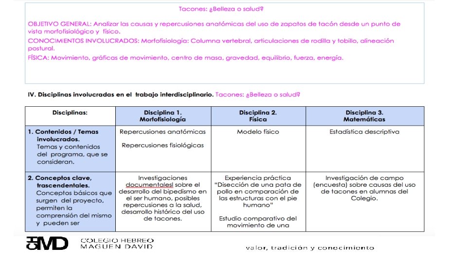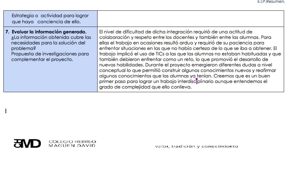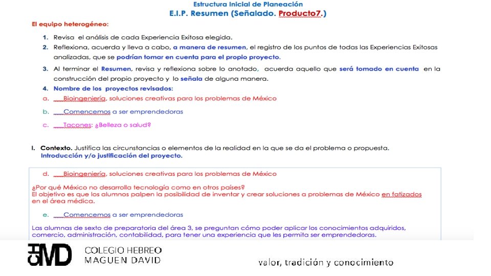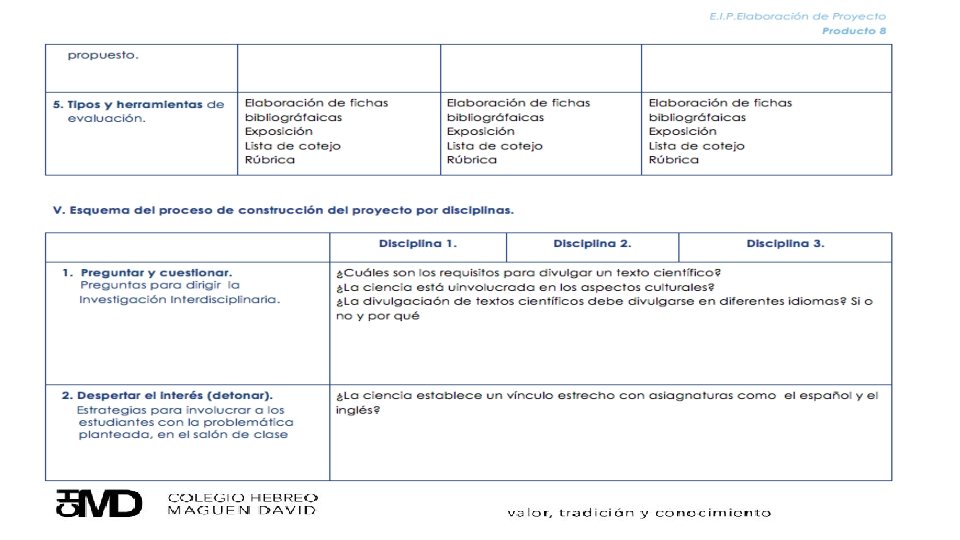 • Compromiso del docente a generar diferentes conexiones en cuando a la currícula y en cuanto a la ejecución de un proyecto. • Recuperar conocimientos de evaluación de trabajo colaborativo • Poder realizar un proyecto que sea planteando desde diferentes áreas. • En un proyecto multidisciplinarios es necesario reconocer los elementos esenciales de las asignaturas que están involucradas. • Reconocer con toda precisión cuáles son las características los elementos, los conceptos involucrados en cada uno de los contenidos que son esenciales dentro de su programa. • Encontrar su transferencia a una realidad en la que puede ser aplicada dicho conocimiento y por lo tanto parece que los elementos que tienen que ser esenciales es que los profesores conozcan perfectamente su programa. Los elementos que son trascendentes, que son profundos, que son transferibles y a partir de ese reconocimiento se pueda establecer conexiones o elementos de integración con otros momentos con otras asignaturas. • El último punto sería el poder reconocer un elemento de la realidad que se puede problematizar que se puede explicar e innovar a partir de la integración de dos áreas disciplinarias distintas • También elemento problematizadora de la realidad se construya un proyecto en el cual se vinculen los aprendizajes esperados en un programa curricular. tratando de no forzar los contenidos pensar en los intereses de los muchachos conocer cuáles son los grandes cuestionamientos que existen en el mundo actual y ver a partir de de dos áreas disciplinares o tres áreas disciplinares que me ayuden a abordarlo con mayor profundidad y desde diferentes perspectivas. • Interdisciplinariedad es trabajar en el conocimiento de los contenidos de las otras materias para poder conectar para poder experimentar desde mi materia.