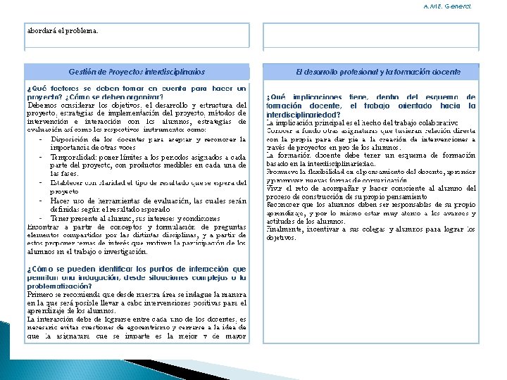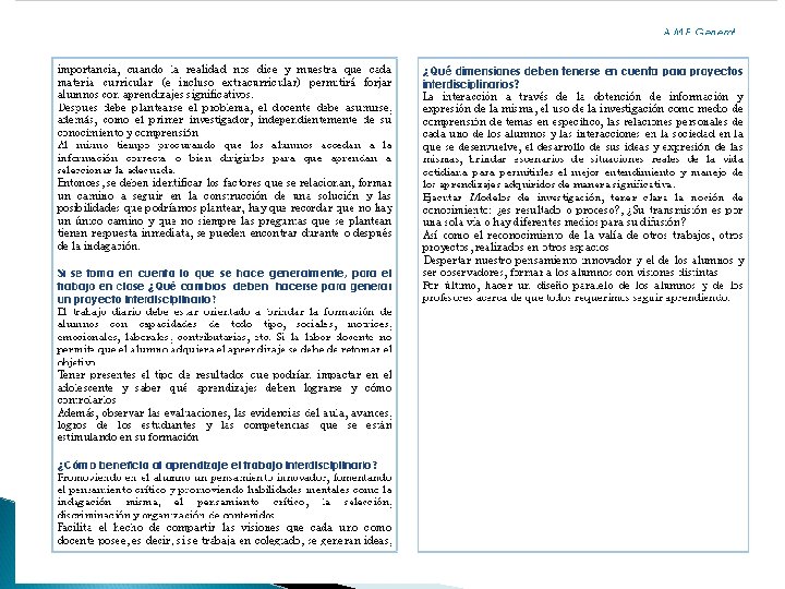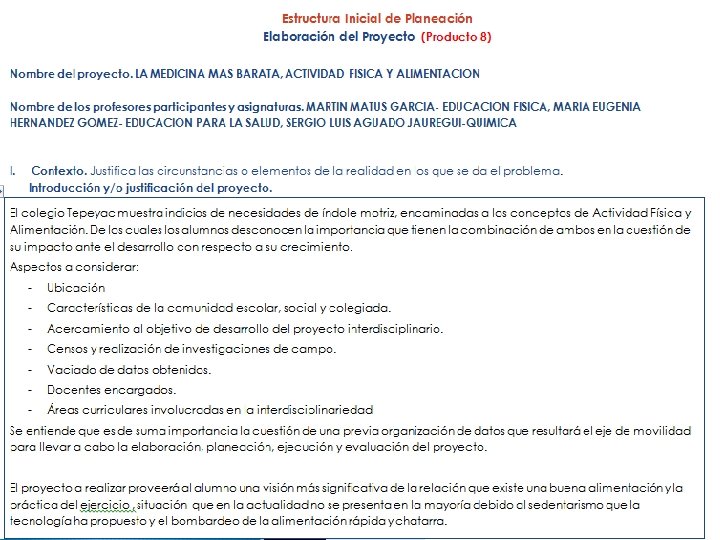 Reflexión Dra. María Eugenia Hernández Gómez Materia Educación Para la Salud. Dentro del proceso de elaboración de este proyecto me enfrenté las siguientes dificultades: • Carecer de internet dentro del Colegio para la elaboración del proyecto • No tener un tiempo sincrónico con mis compañeros para la elaboración del proyecto, destinado para el mismo. • No tener por parte de DGIRE la orientación e instrucción suficiente de forma presencial acerca de las experiencias que la UNAM tiene al respecto de interdisciplinariedad, y siendo una escuela incorporada en el estado de Querétaro, esto influye también a la escasa instrucción para la elaboración del mismo. La resolución de estos aspectos, fue utilizando los datos de mi celular para tener acceso a internet, procurar hacer un espacio, aunque fuera corto en donde mis otros dos compañeros y yo pudiésemos coincidir y hacer preguntas a mi directora técnica de bachillerato para poder subsanar lo mas posible mis dudas. Entre los resultados que observe, fue poder ampliar el escenario al trabajo colaborativo con mis compañeros, plasmando el resultado en el portafolio de evidencias. Y finalmente puedo trabajar mas, este ultimo tema, el trabajo colaborativo, desde la comunicación, organización y elaboración del mismo proyecto.