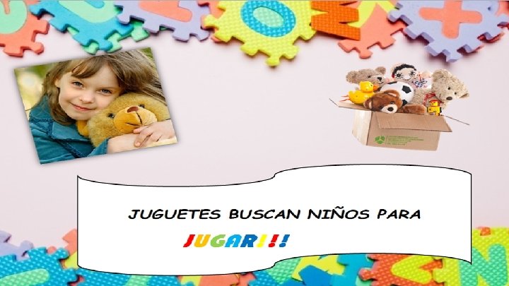 Era se una vez en un pequeño pueblo habían 3 niños, que jugaban todos los días en los parques de la zona, habían 2 niñas, paula que siempre bajaba con un peluche que era una oveja que llamo laila, después Laura que siempre bajaba con peluche en forma de un hipopótamo morado que llamo pili, y por ultimo ramon siempre iba con dragon azul que le regalaron con 3 años que lo llamo fuego. Al pasar el tiempo e ir haciéndose mas mayores dejaron de jugar con sus peluches, muñecas, cochecitos, etc. alfinal Laila acabo en un ricon de la estantería del cuarto de paula, pili en un armario y fuego en un baúl del trastero. Laila cansada de estar en la estantería porque se aburria. Decidio ir en busca de pili y dragon, salio como una campeona y fue a por sus amigos, los cuales se unieron a ella para escapar Una vez juntos se preguntaron que deberían hacer ahora, pili dijo que deberían ir a buscar a un nuevo dueño que los cuiden y los quieran, y jueguen todos los días. Caminando todos los días mucho, encontraron un sitio que decían que recogían juguetes para niños nuevos. Al entrar les atendio una dulce chica, ellos preguntaron que si ella podía arreglarlos, y ponerlos perfectos para conocer a su nuevo dueño. Ella los ducho los vistió los metio en una caja forrada de papel reglado y los llevo a un coche, donde fueron llevados a una nueva casa Cada uno entro en una casa distinta, sabían que no se iban a ver mas, pero estaban muy seguros de estar haciéndolo muy bien. Cada niño abrió su regalo super contento, los peluches al ver lo felices que eran los niños, pidieron que nunca se hiciesen mayores marfil: presentador del cuento y explicar todo lo de donar juguetes.