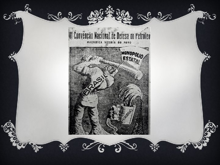 O RETORNO DE GETÚLIO Ø O governo democrático de 1951 à 1954. Ø Foi eleito pelo partido PTB (Partido Trabalhista Brasileiro). Ø A UDN (União Democrática Nacional) era a maior oposição. Ø Liberalistas X Nacionalistas. Ø Criação de duas principais estatais: