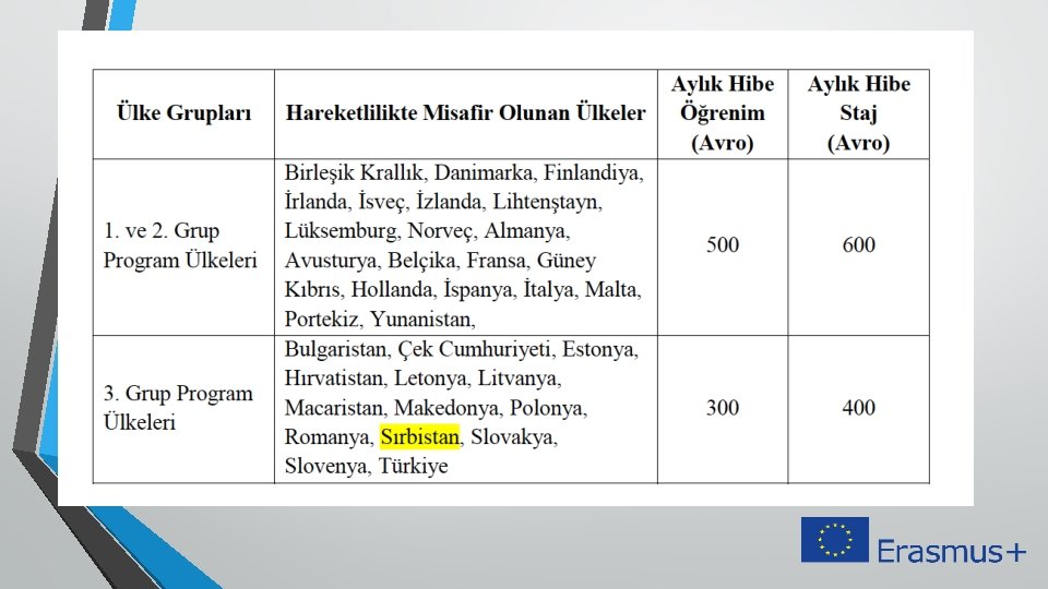 Genel Konular Hibe Erasmus ile giden her öğrenci Ulusal Ajans aracılığıyla hibe almaya hak kazanır. Hibe miktarı hareketlilik türüne ve gidilecek ülkeye göre değişir. Hibenin %80’i hareketlilik öncesinde, %20’si hareketlilik sonrasında ödenir.