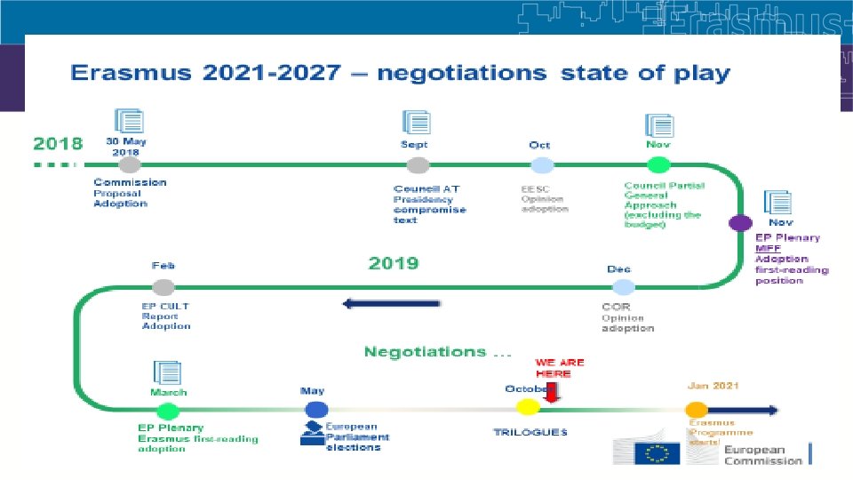 «Evolūcija, nevis revolūcija» • Erasmus+ programma – Eiropas veiksmes stāsts, kas jāturpina uzlabotā versijā. • Jaunā programma saglabās integrēto pieeju, kas aptver mūžizglītības formālo, neformālo un ikdienējo kontekstu. • Programmai jākļūst arvien atvērtākai un pieejamākai. • Jaunās programmas administratīvajam slogam jābūt mazākam, noteikumiem un procedūrām vienkāršākām. • Programmai jākļūst arvien vairāk sinerģēt spējīgai.