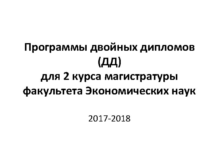 Erasmus School of Economics DD Рекомендуемые программы для магистров: • Financial Economics • Policy Economics • Econometrics • Quantitative Finance • Entrepreneurship and Strategy Economics • (возможны и другие программы по согласованию с Вашими руководителями магистерских программ ВШЭ) Подробнее о программах и курсах: • http: //www. eur. nl/ese/prospective/master_programmes/