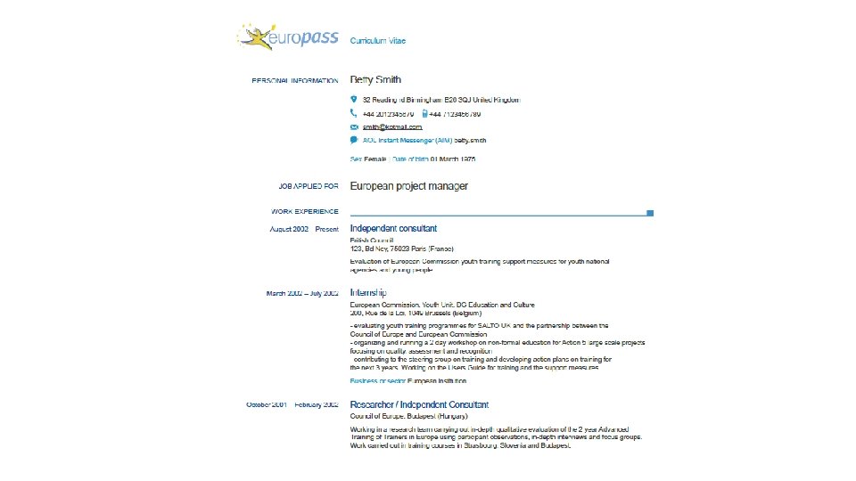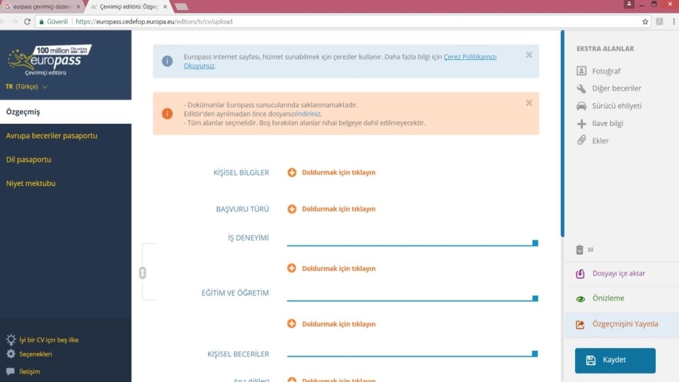 Euro. Pass CV • Yeterliliklerin aday ülkeler dahil AB’de açıkça ve kolayca anlaşılmasını sağlamak ve bu sayede mezunların ve öğrencilerin istihdamını ve hareketliliğini arttırmak amacıyla EUROPASS (Avrupa Pasaportu) oluşturulmuştur. • CV'nizi tamamlamak için Europass çevrimiçi düzenleyiciyi ziyaret edin. Bunu tamamladıktan sonra elektronik (indirerek veya e-mail) olarak tamamlanmış CV'ye ulaşabilirsiniz.
