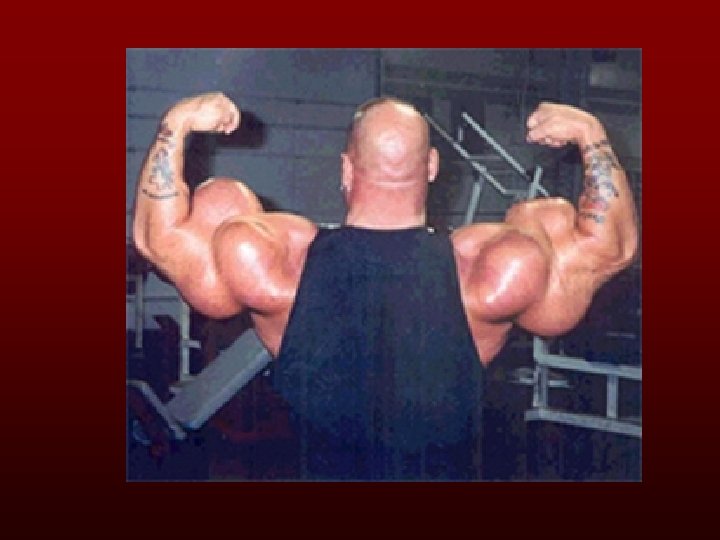 Side Effects (cont’d): • Skin: acne, hirsuitism, striae, androgenic alopecia, inc. sebaceous glands • Metabolic: hypernatremia, kalemia, phosphatemia, calcemia, “prediabetic” • Psychiatric : aggressiveness, extreme mood swings - depression/ mania, dependence, other drug use, “Reverse Anorexia” • Long Term - dec. life span