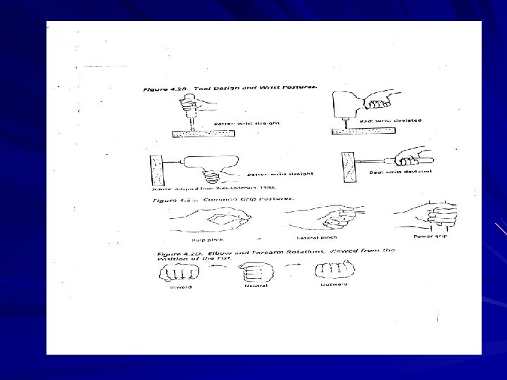 Posisi yang menghasilkan kelelahan Misalnya : ² Mengangkat berulang-ulang pada posisi yang mengharuskan pekerja mendongkak ² Pekerjaan dengan objek yang letaknya diatas kepala pekerja dan dalam waktu yang lama ² Posisi tubuh membungkuk untuk waktu cukup lama