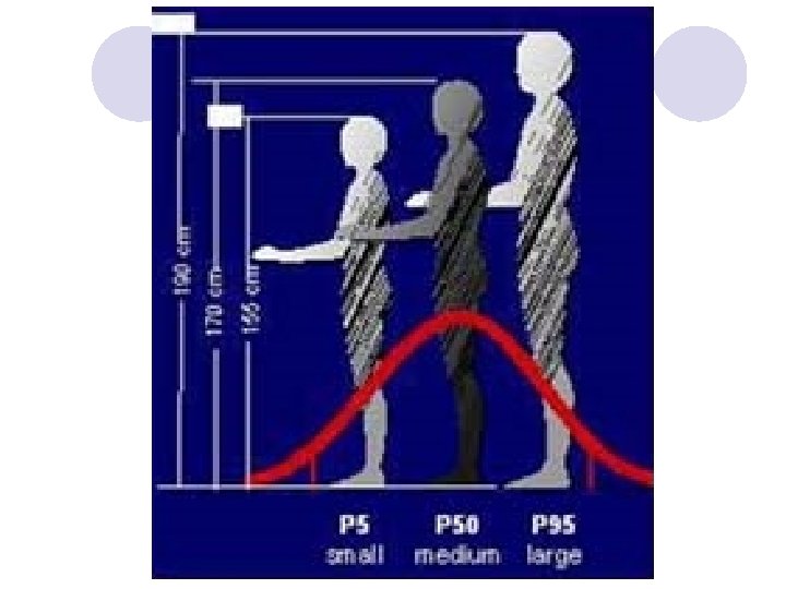 Deciding whether to use the 5 th, 50 th or 95 th percentile value depends on WHAT you are designing and WHO you are designing it for. l Usually, you will find that if you pick the right percentile, 95% of people will be able to use your design. For instance, if you were choosing a door height, you would choose the dimension of people's height (often called 'stature' in anthropometry tables) and pick the 95 th percentile value – in other words, you would design for the taller people. You wouldn't need to worry about the average height people, or the 5 th percentile ones – they would be able to fit through the door anyway.