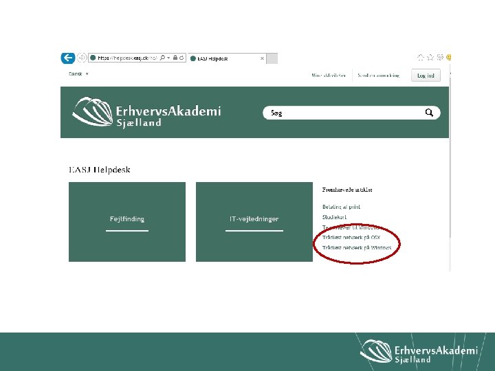Erhvervs. Akademi Sjælland helpdesk. easj. dk