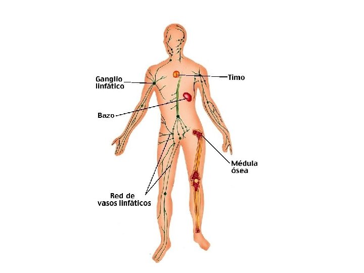Antígeno (Ag) • Es lo que genera anticuerpos. • Son proteínas o grandes polisacáridos. • Masa molecular de alrededor de 8000. Linfocitos • Principalmente en los ganglios linfáticos. • También en el bazo, la submucosa del aparato digestivo, el timo y la MO. • Derivan de la PHSC de la MO (cont. )