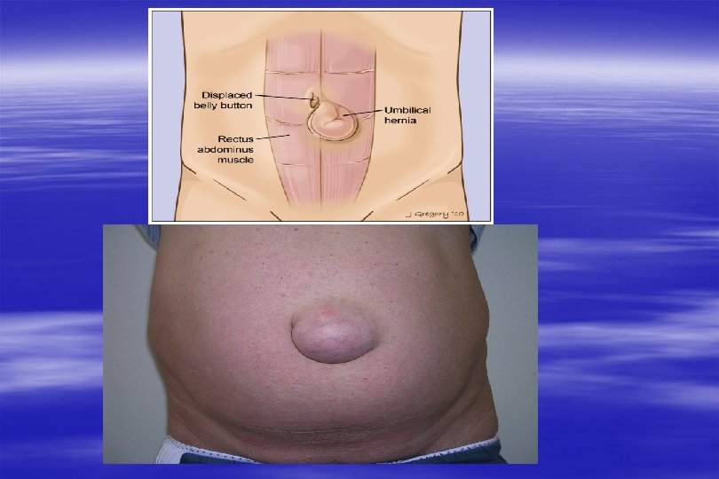 PATOGENESI CAUSE PREDISPONENTI CAUSE DETERMINANTI Malformazioni congenite della parete Gravidanza Indebolimento della parete nell’anziano Sforzi che aumentano la pressione endoaddominale (pianto, tosse, stipsi, sollevamento di pesi) Ascite voluminosa Insufficienza respiratoria cronica