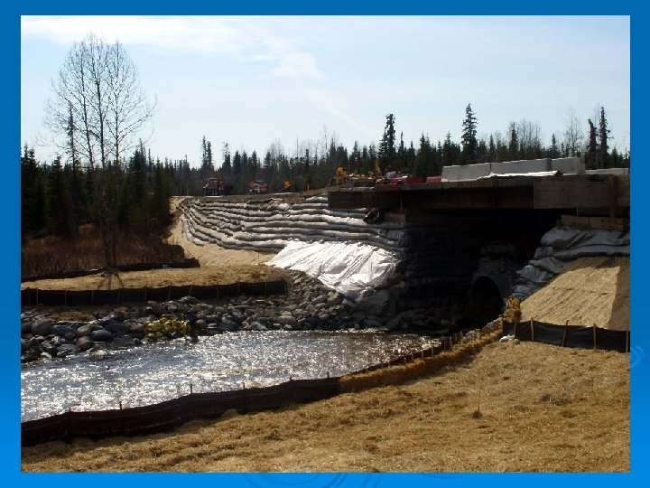 Feedback from Construction Ø Ø Ø Ø Ø Estimate TEPC at 3 -5% of the Project cost for construction costs to comply with Permit requirements and the SWPPP. If a lump sum Item is used for TEPC, show the Design quantities for measures required/included in the LS Item. If a lump sum Item is used for TEPC, include a CS Item for added measures not included in the LS Item. Review the Permit requirements and clearly incorporate Permit commitments into the Contract. Create Items for as many measures as anticipated: Silt Fence; wattles; straw bales for mulching (invasive species free if hay bales are used. There is list created by the Homer Soil Conservation Service of suppliers on the Peninsula); Temporary Seeding; straw matting (SB-75 N with biodegradable thread, not plastic filament thread); and basins, slope drains, and check dams depending on the Project scope. Address the control or diversion of live water through the work zone in the Design phase. Establish a minimum 25 -foot protection zone along creeks and drainages that incorporates stage construction that minimizes clearing, retains a buffer zone, or reconstructs impacted areas. Give Construction as many tools as possible to be in compliance of the SWPPP and Permits. Acknowledge that an NOV for noncompliance is issued to the Construction Project Engineer; not the Designer, Project Manager, or Environmental Analyst. Our legacy precedes us.